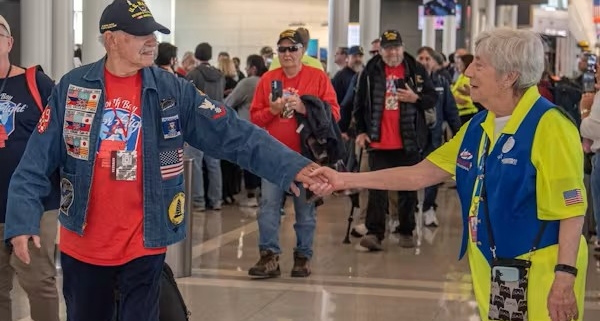 If you haven’t been over to our website recently, we’ve added two new flights to the schedule. That means that you have 28 more chances to greet our veterans this fall. The photo below illustrates the importance of being at the airport to make sure that we do our best to ensure that these veterans know that we understand their sacrifices and care that they have chosen to make an Honor Flight journey.